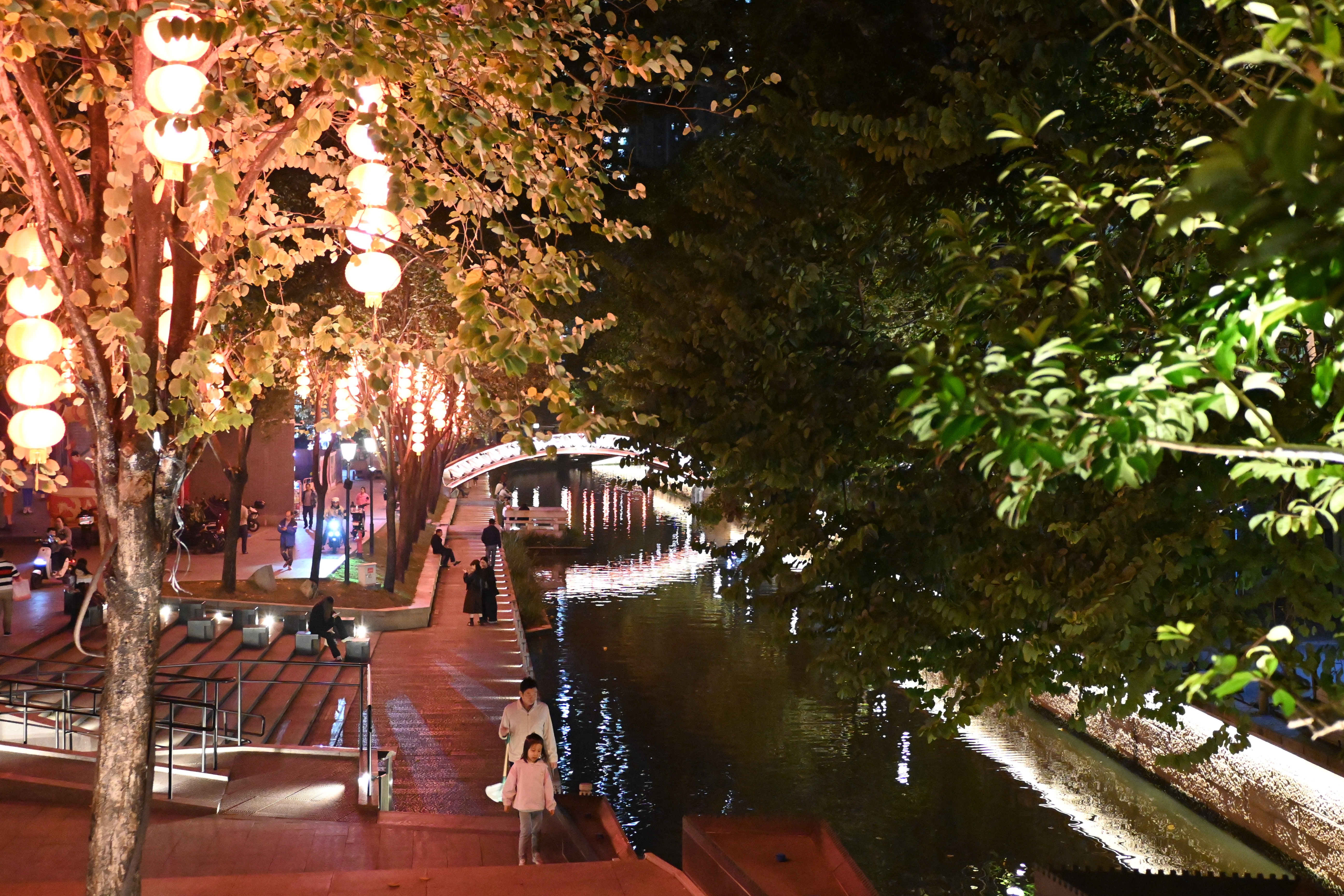傍晚的荔枝湾涌,两岸都是散步拍照的人们。 南方+ 郎慧 拍摄
