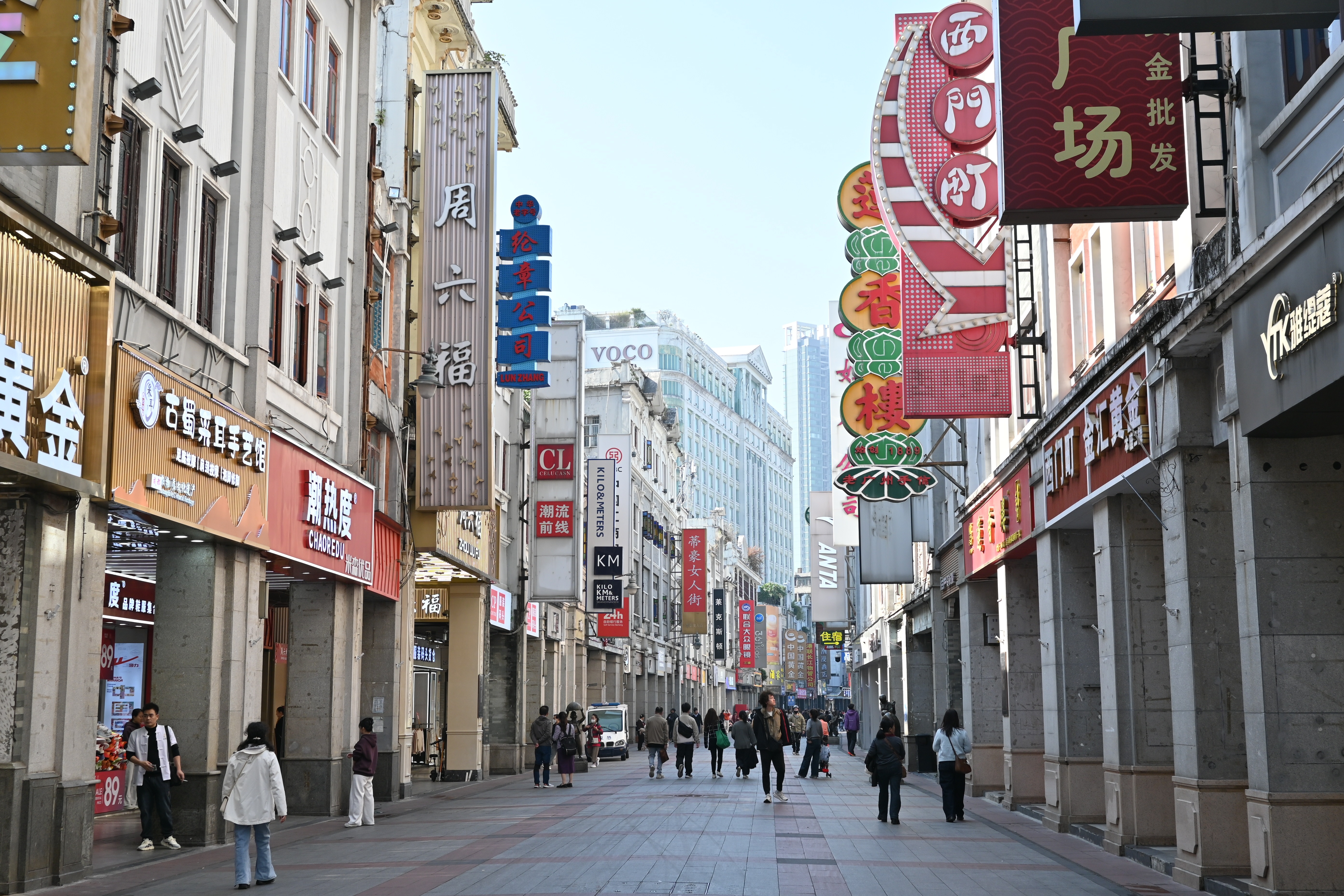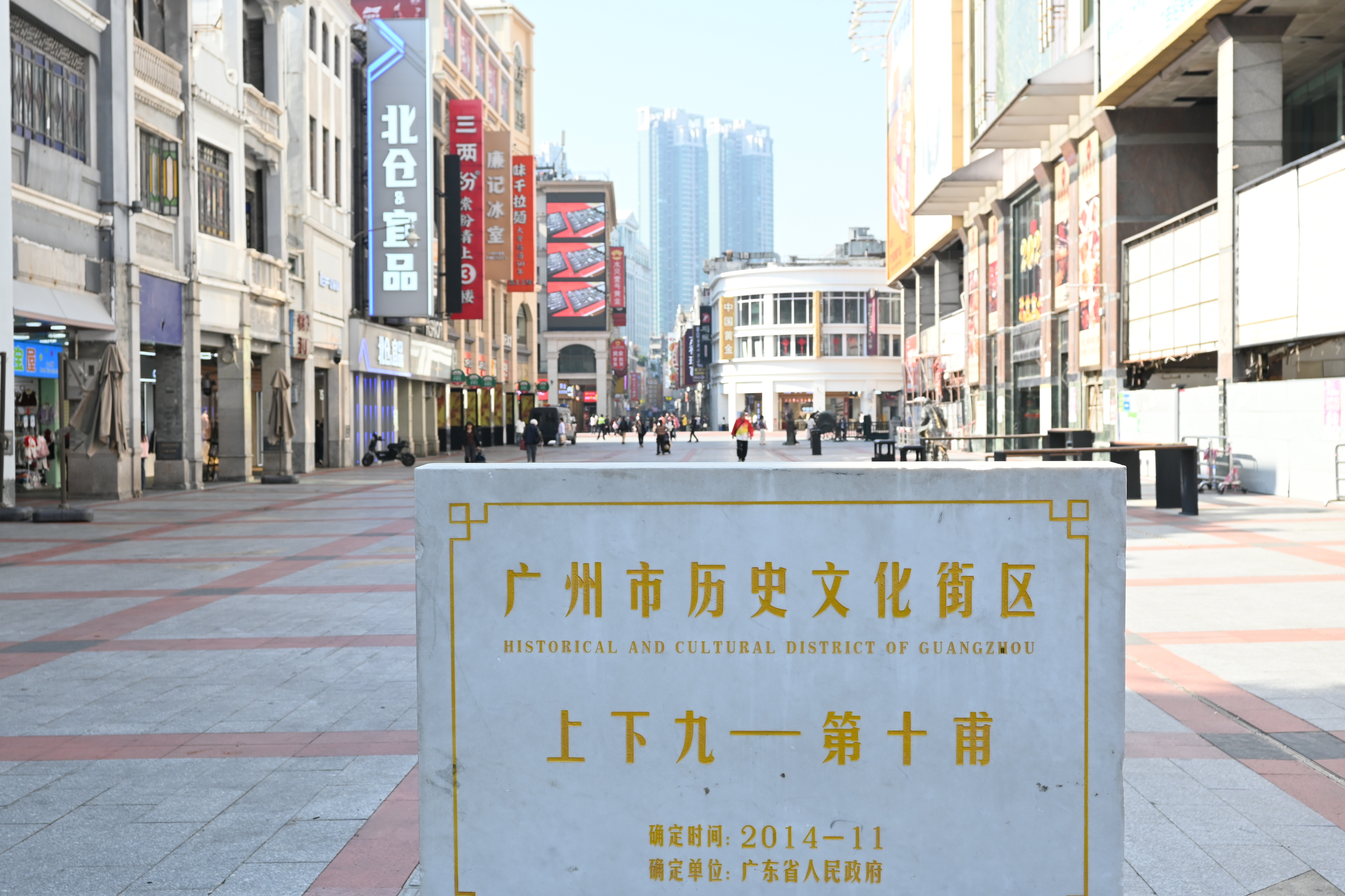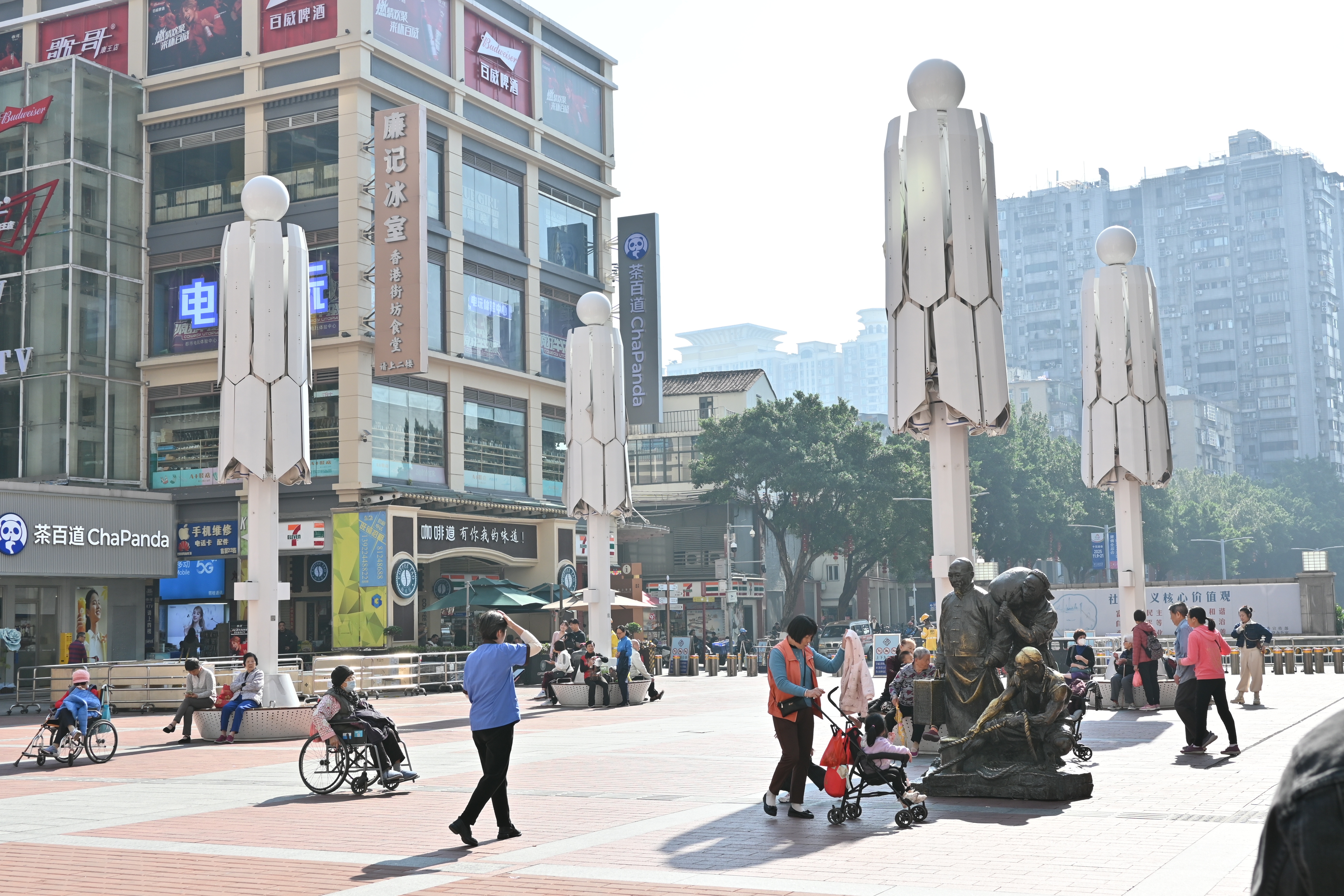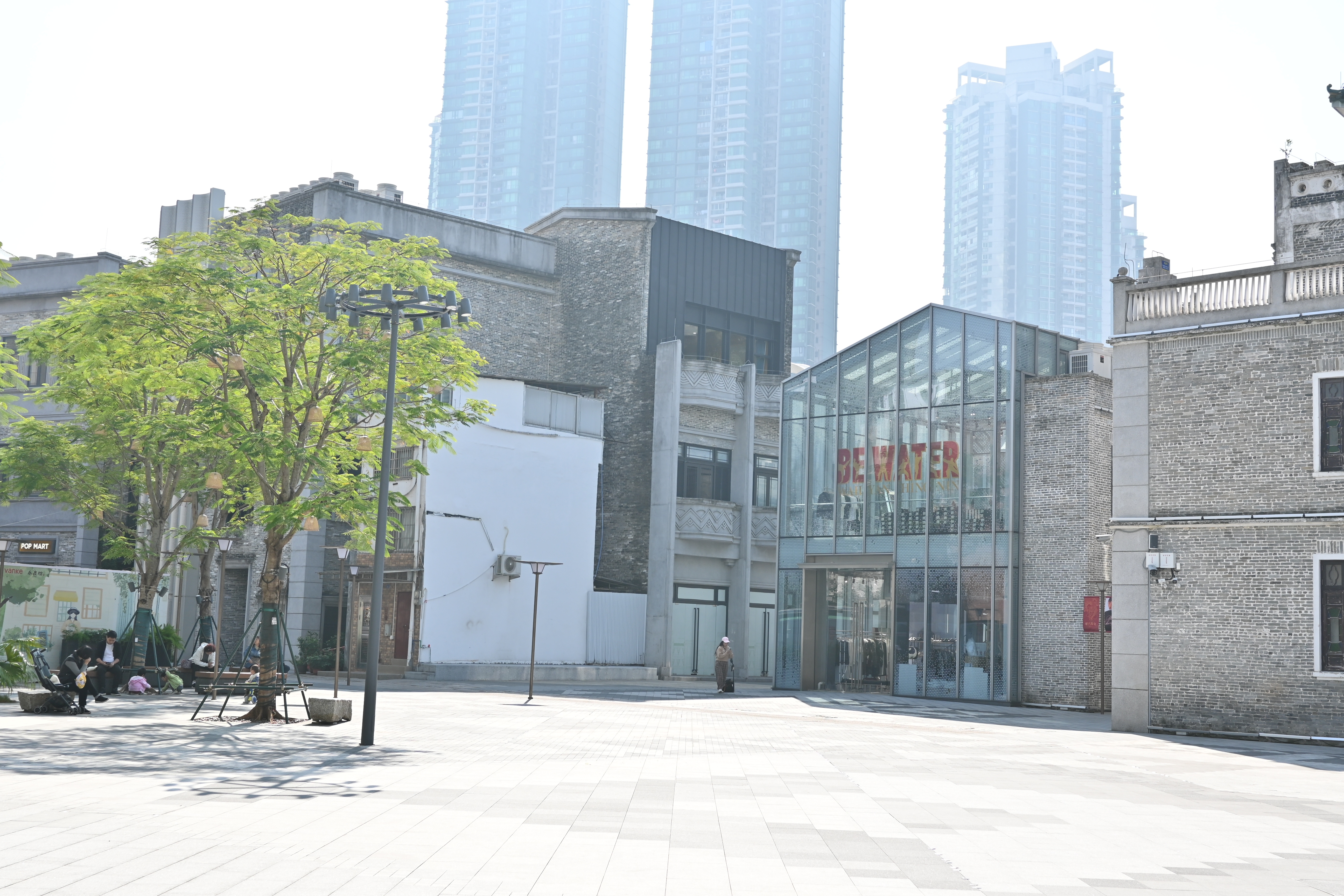 上下九街区市民休闲广场,重新粉刷的商场外立面让街区显得干净很多。 南方+ 郎慧 拍摄